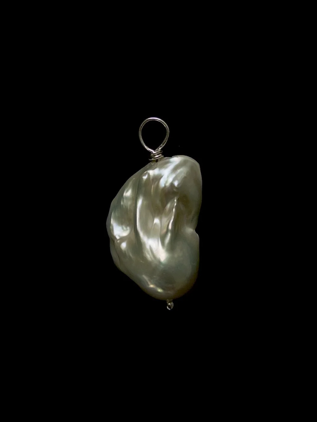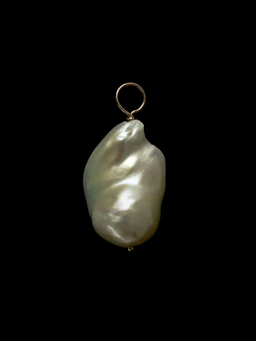 Baroque pearl pendant in gold filled or sterling silver. Hand wrapped bail loop is 5mm inner diameter ready to fit your fine chain. Pearl length approximately 25mm.